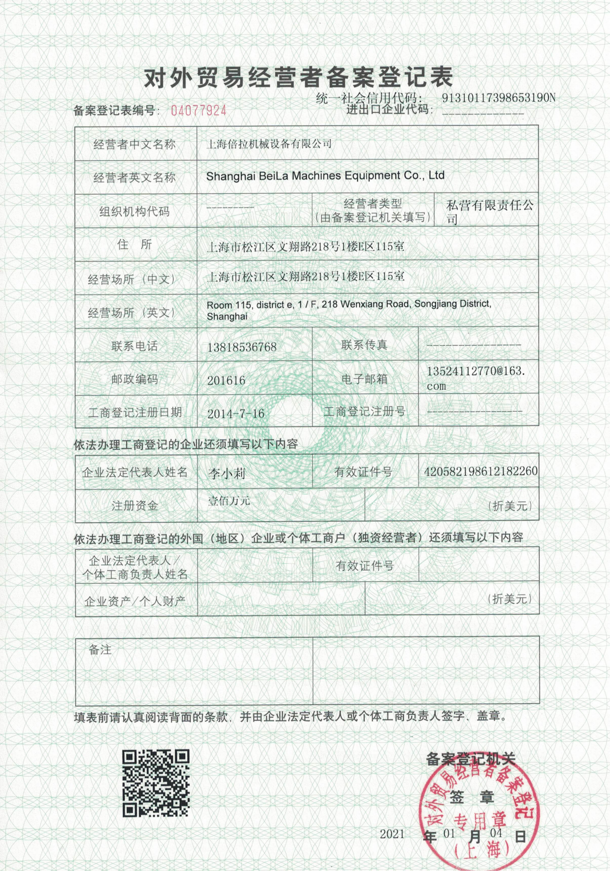 对外贸易经营者备案表